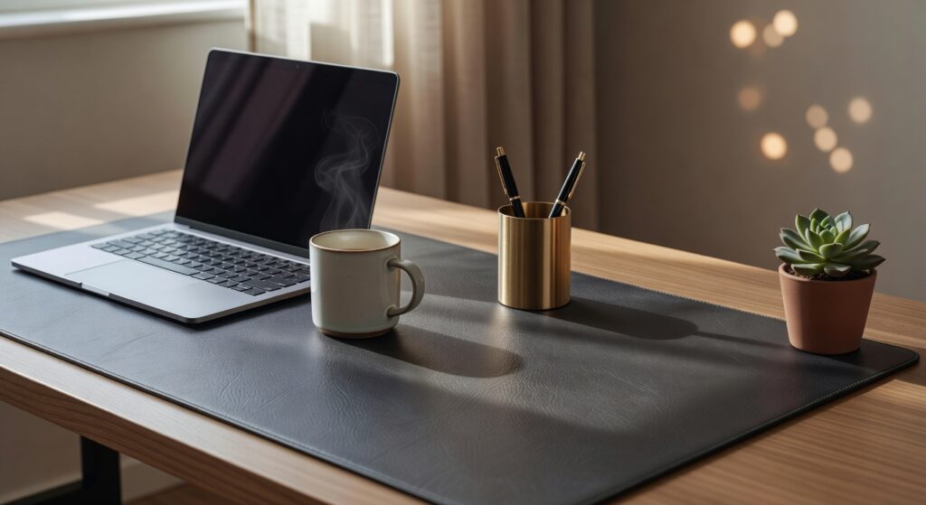 Material quality is the backbone of any faux leather desk mat worth your money — look for something scratch-resistant, waterproof, and easy to wipe clean, because between coffee spills and daily use, your mat needs to keep up with your busy life. A good faux leather should feel smooth and consistent, closely mimicking genuine leather without the premium price tag, and if it feels cheap or flimsy, trust your instincts and skip it. Opt for a thicker, heavier mat that stays put on your desk and won’t crack, peel, or discolor after just a few months of use.