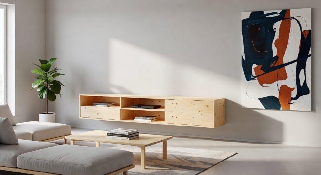 Ever tried to rearrange your living room for a movie night, only to wrestle with a bulky TV stand that steals the space and leaves cords everywhere? A floating birch console solves that by keeping the TV sleekly mounted while hiding cables and supporting up to 150 lb, so a 65‑inch screen fits safely without the clutter.