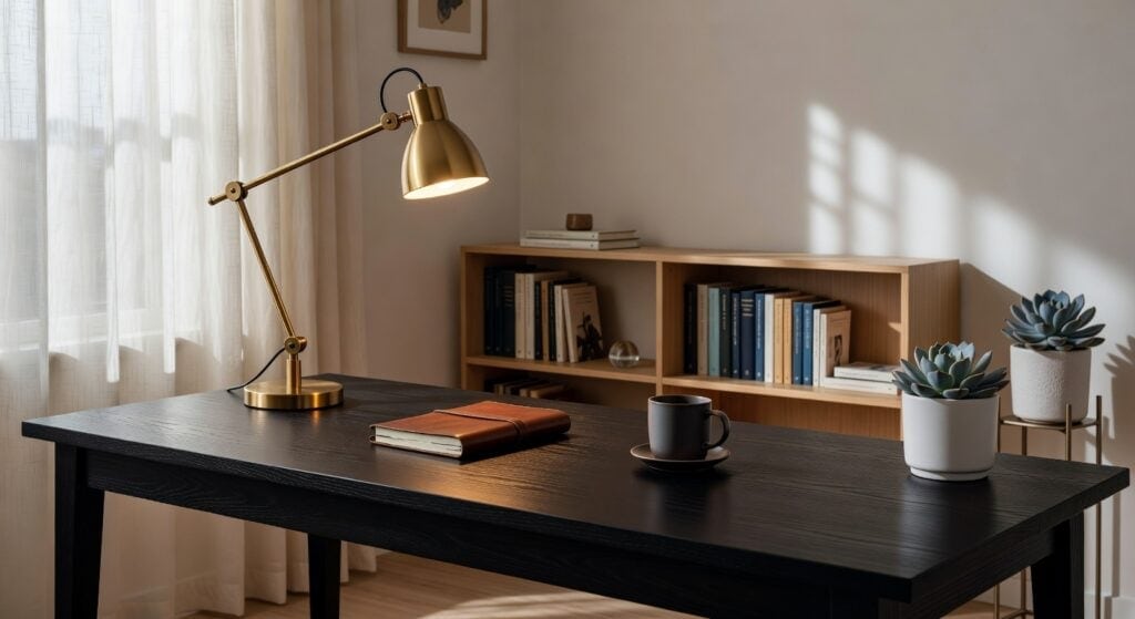 Choosing a brass or steel swing‑arm lamp—usually 1.5–2 kg—keeps it steady even when you push it to the desk’s edge, while plastic feels flimsy and can sag. A brushed finish hides fingerprints and adds subtle texture, whereas a polished coat catches light for a luxe vibe but needs occasional polishing. Pick antique gold for vintage charm that matches wood desks, or a sleek modern finish that fits your home’s style and upkeep preferences.
