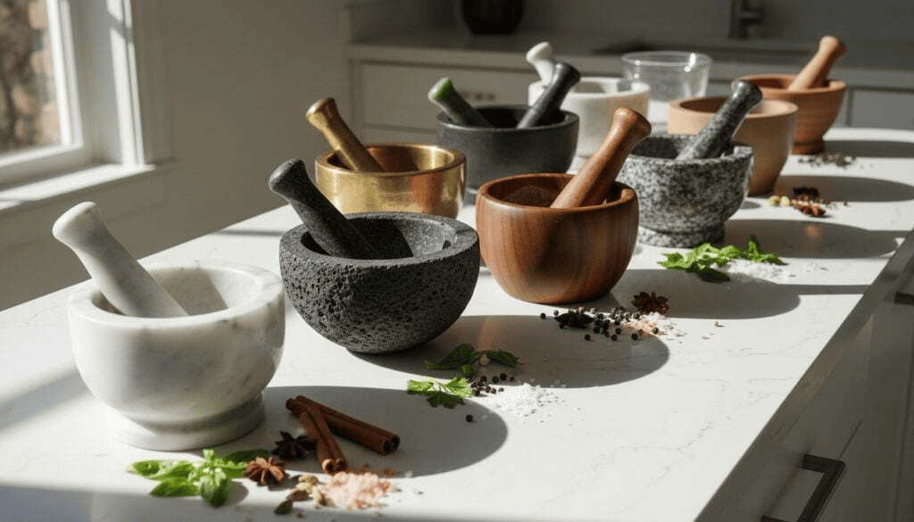 - Granite mortars offer superior durability and grinding power, with rough interiors excelling at crushing hard spices and peppercorns.