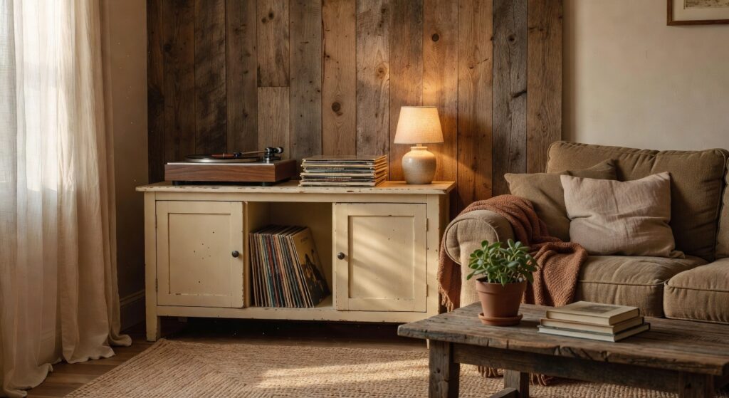 A distressed‑cream console instantly ties a farmhouse kitchen island, shabby‑chic sofa, or brass lamp together when its hue mirrors soft ivory walls or warm walnut floors, making it feel purposeful, not an afterthought. Pair its muted ivory with living‑room accents like cream throw pillows and a light‑stained coffee table for a seamless, curated look, and add vintage‑inspired details such as turned legs or carved motifs to blend timeless charm with modern farmhouse or transitional style. Keep the scale right—48 in wide for a 55‑in TV or 30 in high for a modest space—so the piece feels balanced, fresh, and familiar.