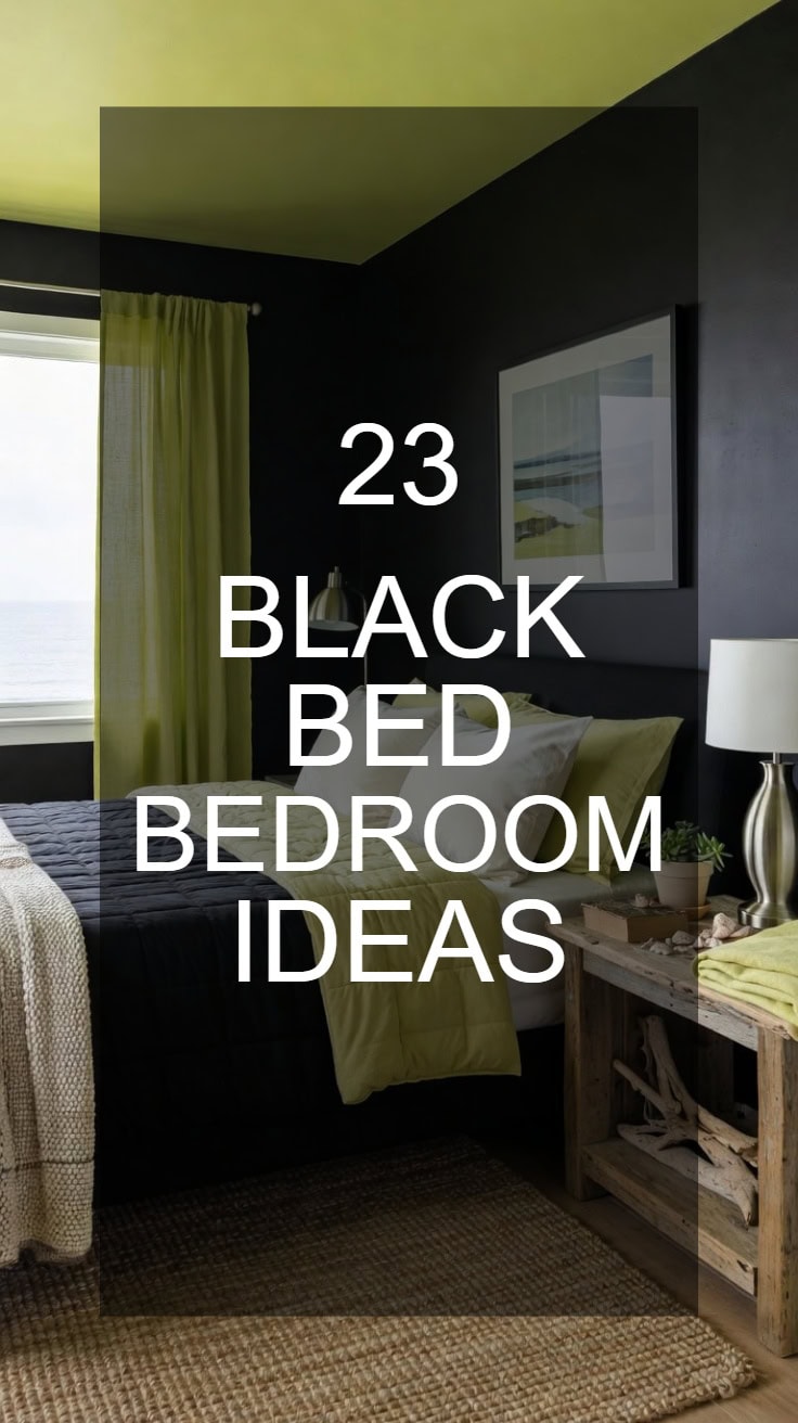Fresh black walls and lime‑green accents bring a breezy coastal vibe to a master bedroom, while natural driftwood pieces add soft, beach‑inspired texture. The deep black creates a dramatic backdrop, and the lime‑green pops in cushions and décor, echoing sea‑foam and sunshine. Together with woven jute rugs and a sleek metal lamp, the room feels airy yet grounded, perfect for a stylish retreat.