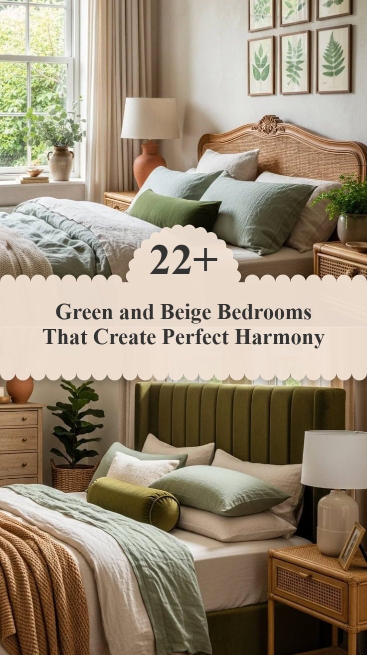 There’s something undeniably soothing about pairing green and beige in a bedroom—it’s like bringing the tranquility of nature right into your home. These earthy tones create a restful retreat that feels both grounded and refreshing.
